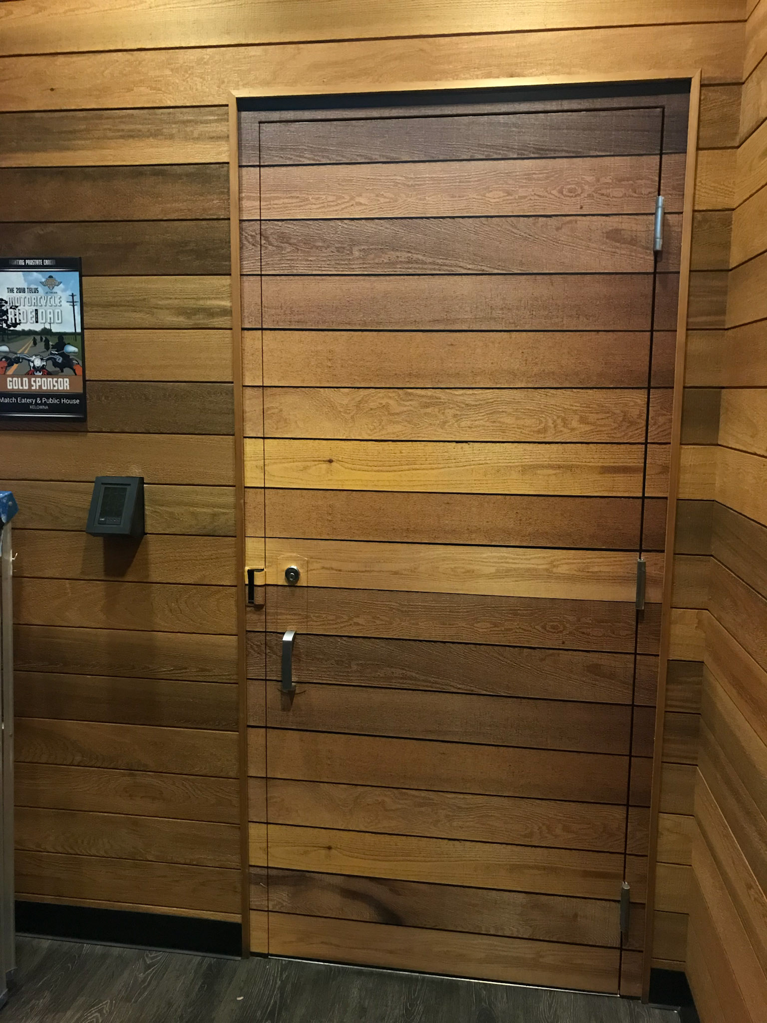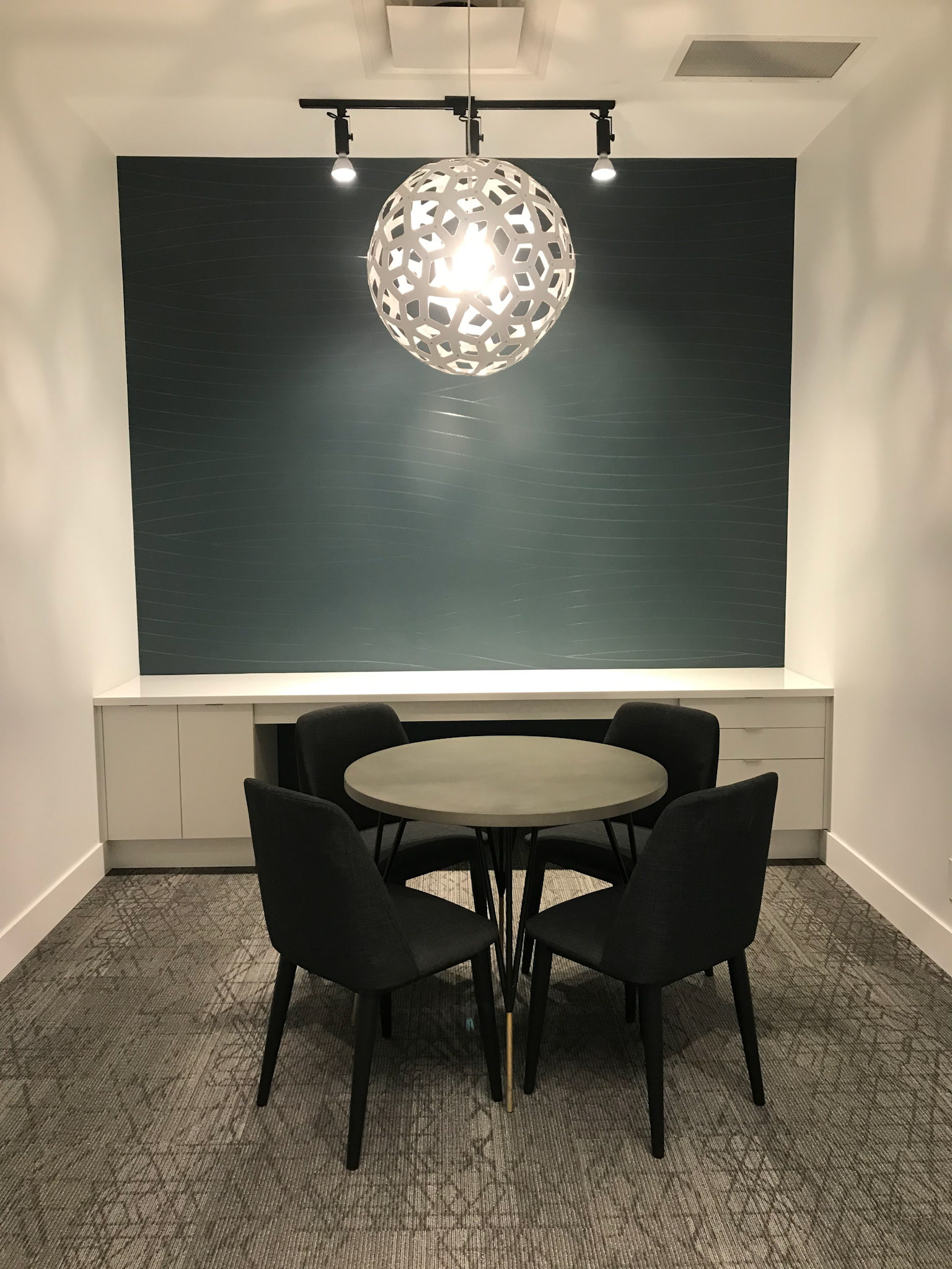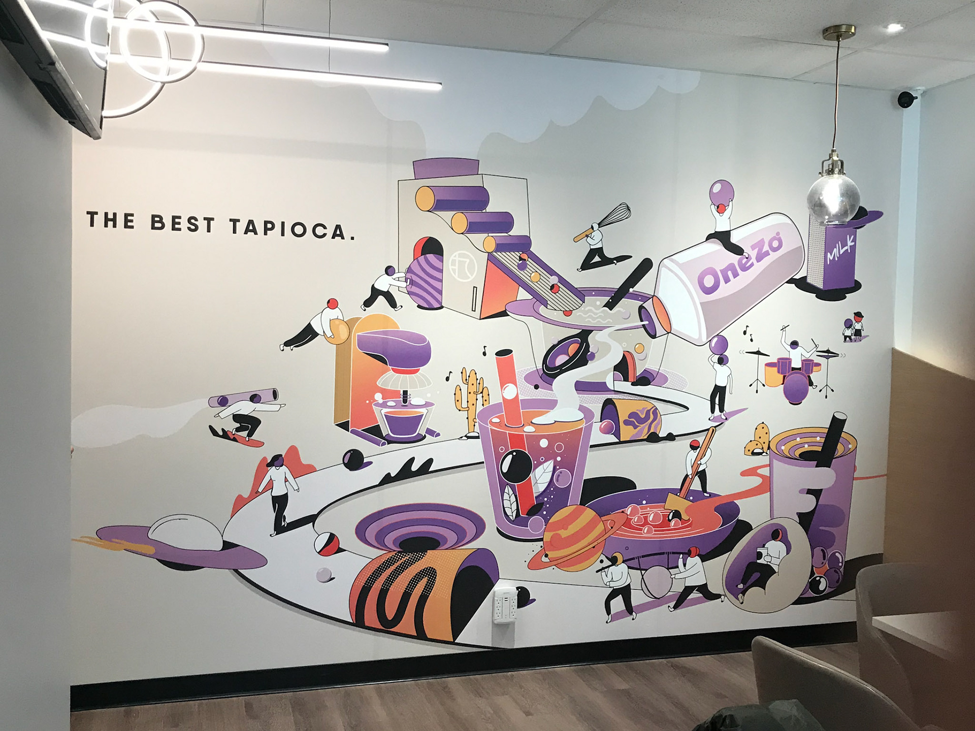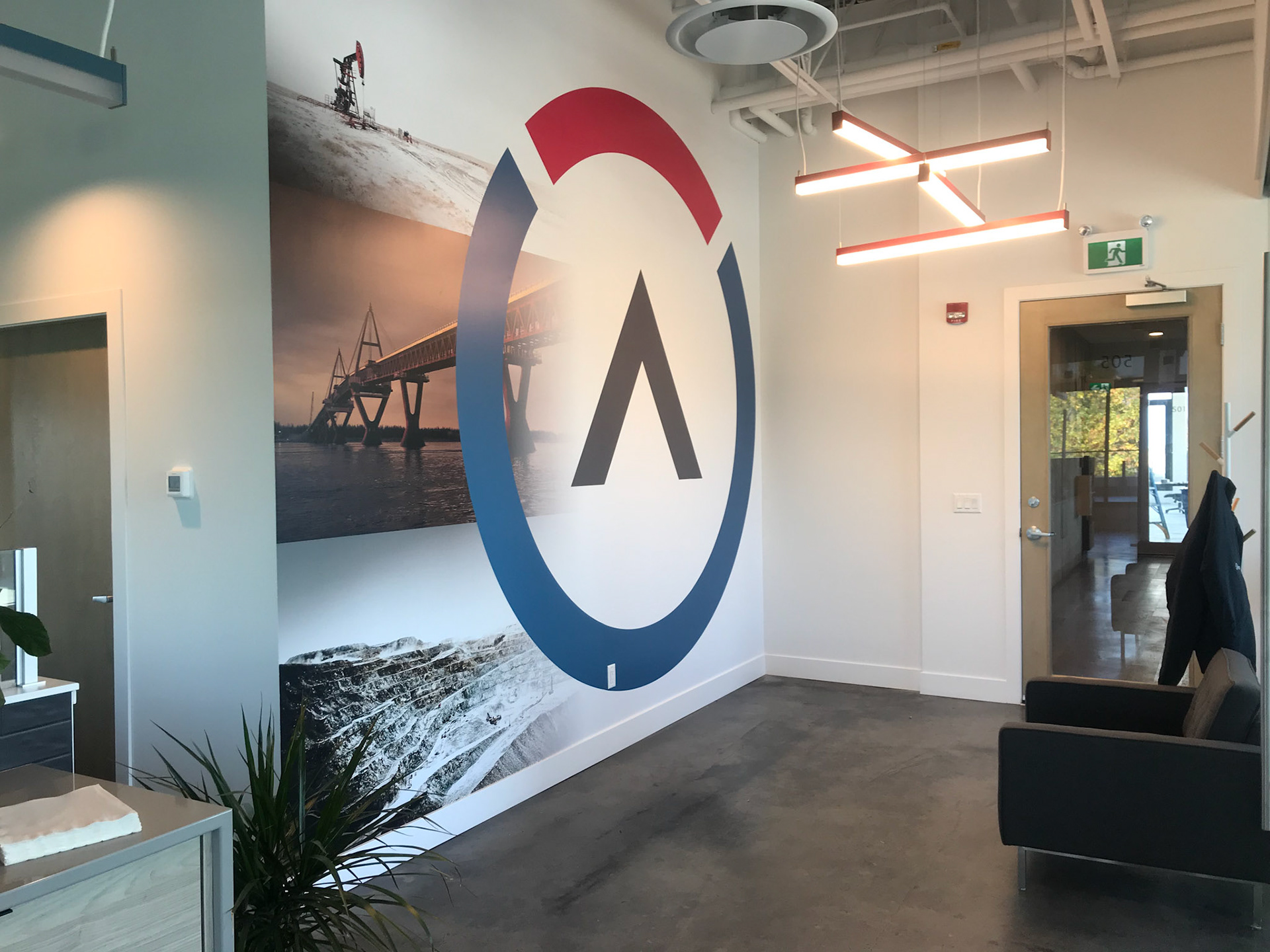 Make your interior standout with a wall wrap, created with custon vinyl prints or textured architectural films, such a 3M Dinoc.